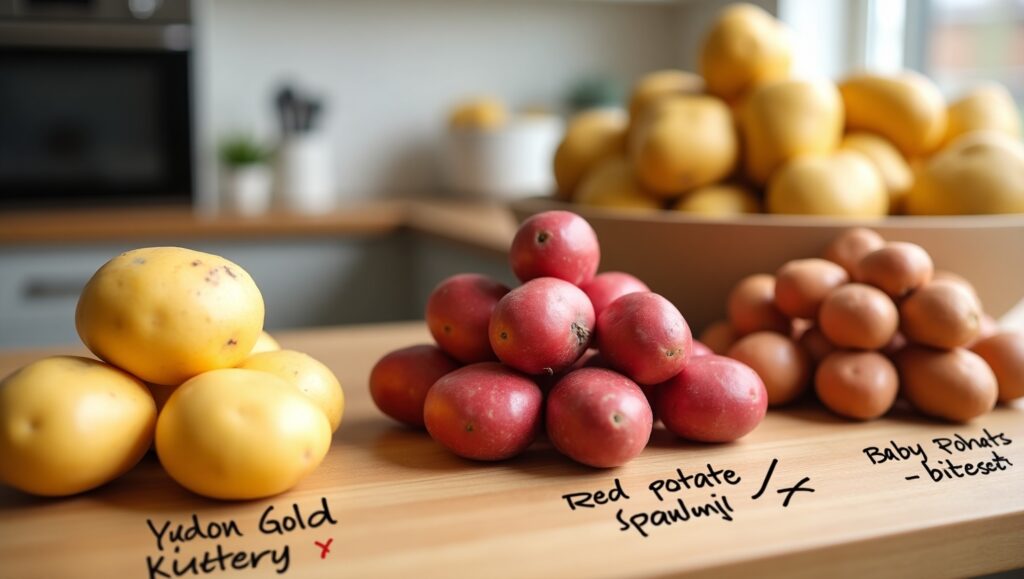🚫 Avoid russet potatoes—they’re too starchy and fall apart after boiling.