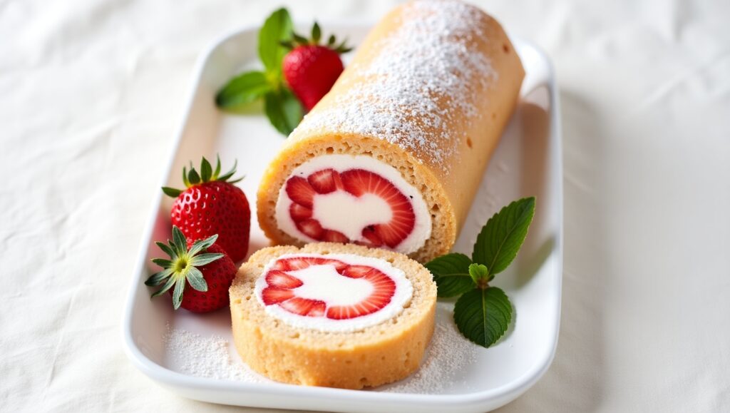 Actually — no puff pastry here! A traditional Strawberry Swiss Roll is made with a soft, flexible sponge cake. The sponge gives this roll its signature light texture and makes it easy to roll without cracking. Save puff pastry for other treats — here, sponge is king!